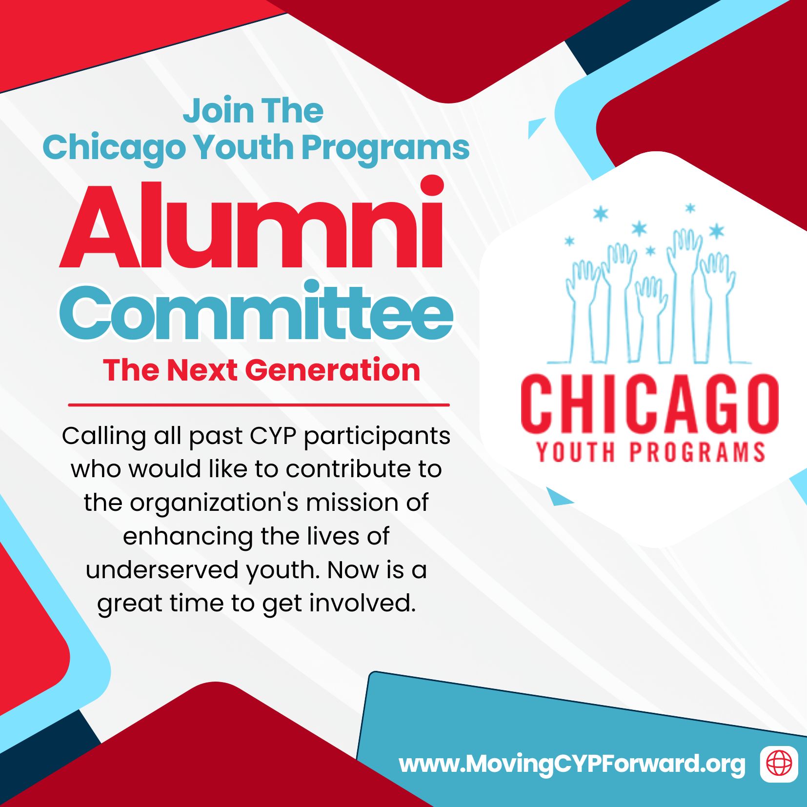 The Chicago Youth Programs Alumni Committee is dedicated to supporting and connecting former participants of Chicago Youth Programs, fostering a network of engaged and empowered alumni who contribute to the organization's mission of enhancing the lives of underserved youth. Through mentorship, community service, and professional development opportunities, the committee strives to create lasting impact and promote lifelong success for its members.